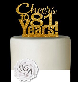CakeSupplyShop Item#081CTA - 81st Birthday / Anniversary Cheers Super Gold Glitter Sparkle Elegant Cake Decoration Topper