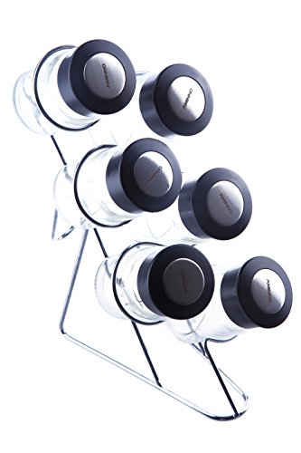 Juvale Glass Spice Jars with Vertical Stand Holder, 3oz, 7 Piece Set