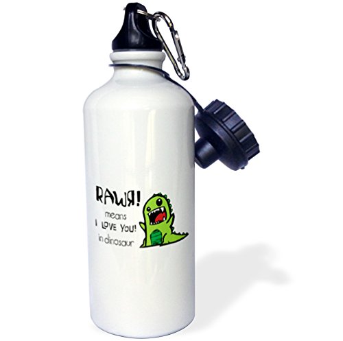 3dRose wb_157446_1 Rawr Means I Love You in Dinosaur Sports Water Bottle, 21 oz, White