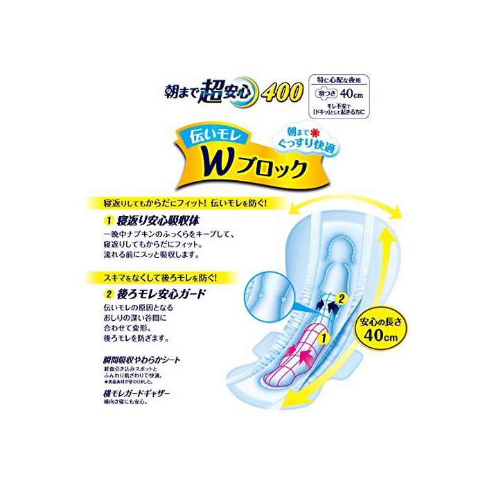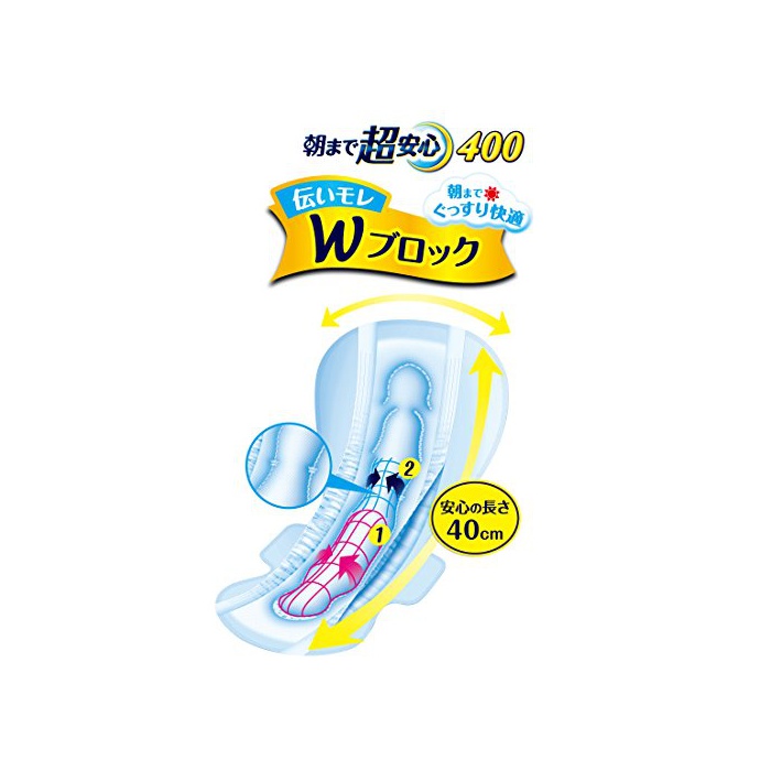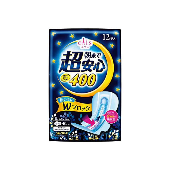 원본상품명: エリス 朝まで超安心 400 羽つき 40cm (特に多い日の夜) 12枚