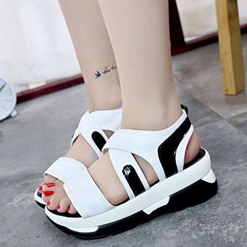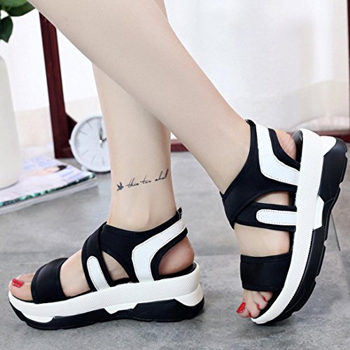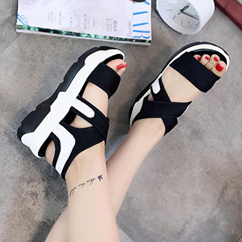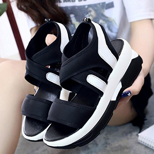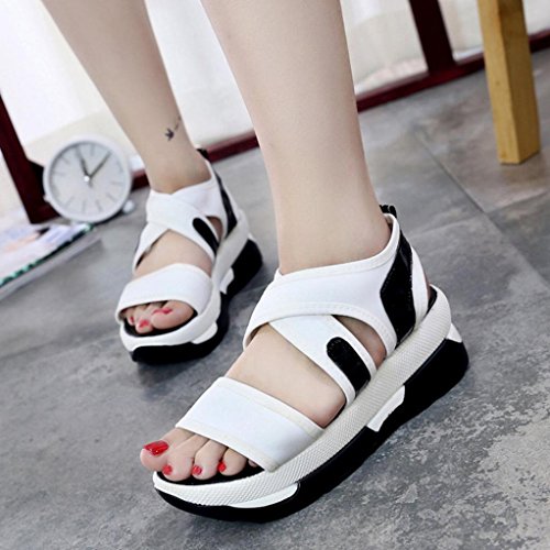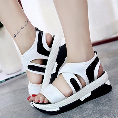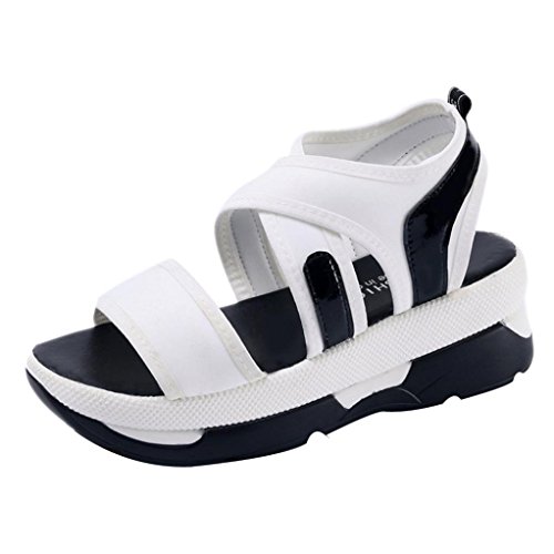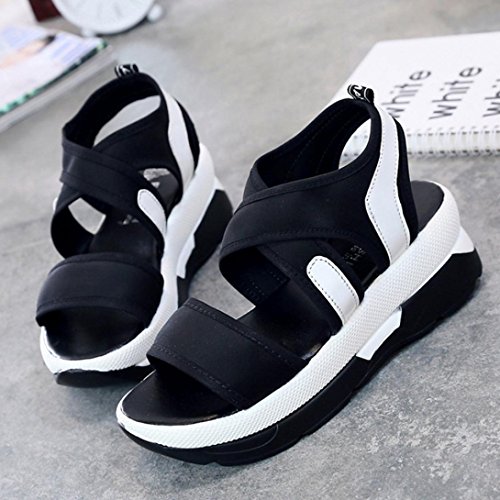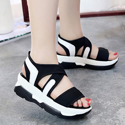 Feature: Item Type:Women sandals shoes Vamp Material:Elastic Fabric. Sole Material:Polyurethane. Pattern:Solid Style:Leisure Heel Type:Wedges Heel height:5cm. Closure type:Slip-On. Color:Black,White Package:1 pair Women Sandals(without shoes box) Size details: US ===RU/EU/CN ===Foot Length === === === 4.5 ===35 ===22-22.5cm/8.6"-8.8" === === === 5.5 ===36 ===22.5-23cm/8.8/"-9.0" === === === 6.5 ===37 ===23-23.5cm/9.0"-9.2" === === === 7 ===38 ===23.5-24cm/9.2"-9.4" === === === 8 ===39 ===24-24.5cm/9.4"-9.6" === === === 0