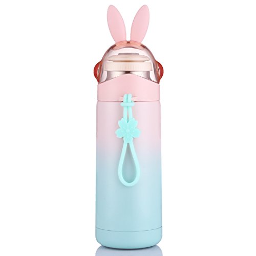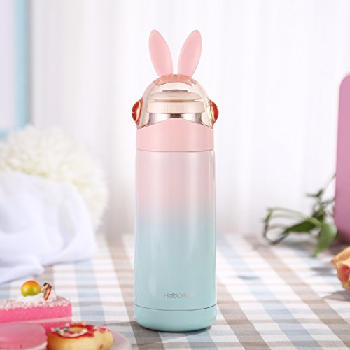 Gradient rabbit thermos,Leak-poof design and cute rabbit ear,portable put onto the bag,tightly fitted lid prevents the inside liquid from leaking
