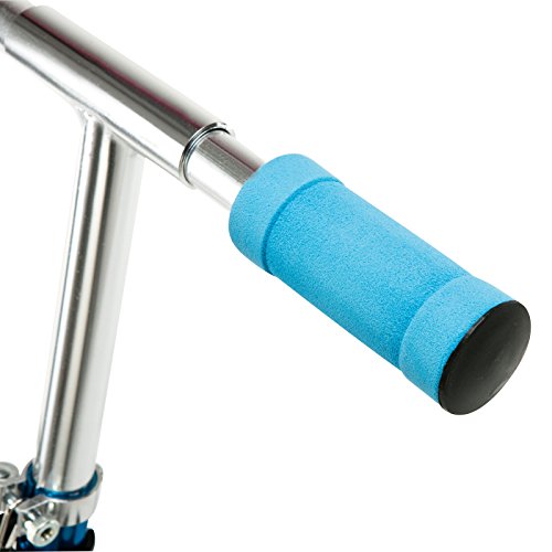 -. Feature : Main Material: Aluminum / Wheel Material: PU / Wheel Quantity: 2pcs / Max Load: 90kg & Color : Blue / Open Size: 90*11*105 cm, Footboard Size :11 cm, Hand bar width:37 cm
