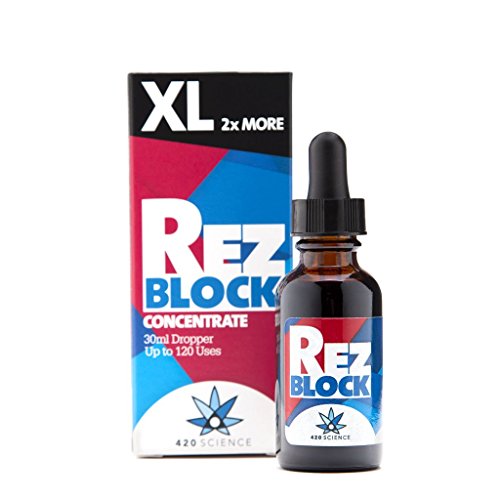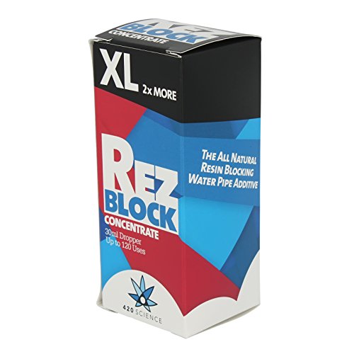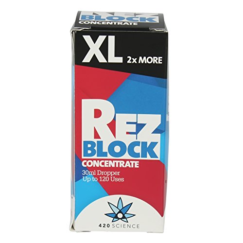 Studio : 420 Science Publisher : 420 Science Binding : Kitchen Product Description After two strong years with RezBlock, we started looking for ways to make it even better. We began with two goals in mind: let's find a way to give people more RezBlock for their buck and, if possible, let's make it even harder for resin to build up. The solution to both of these objectives came in the form of a concentrated formula. - - - This bottle contains up to 120 uses (compared to 860 uses with the 15mL RezBlock). Just add a few drops in your water pipe to keep resin from building up. - - - Best Practices - We find that serious enthusiasts change their water daily. Combined with a few drops of RezBlock, this is the best way to maintain a clean piece and get that pure taste we all love. - - - Cleaning After using RezBlock - Rinsing your piece with water should be enough to keep it mostly clean. Of course, you'll still need to clean your bowl and any parts of your pipe where the water doesn't touch. - - -Ingredients - Fruit extracts, vegetable glycerin, purified water, citric acid 0