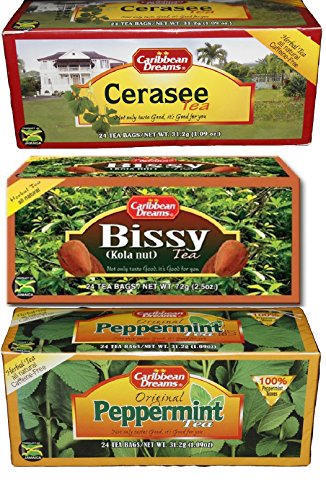 -. Title : Caribbean Dreams Tea Collection - Carton of Bissy (Kola Nut) Tea, a Carton of Cerasse Tea Plus a Carton of Peppermint Herbal Tea - Bundle of Three 24 Count Packs