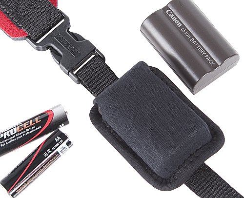 -. Feature : Loop attachment easily slides onto camera strap or belt. / Holds standard DSLR batteries, AA batteries. / Hook and loop closure secures contents. / Outside pouch dimensions: 2 3/8" x 3 3/16"; Inside pouch dimensions: 2" x 2 3/4". / Made in the USA.
