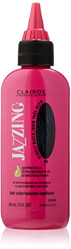 -. Binding : Health and Beauty -. Brand : Clairol -. Color : Bluest Black -. EAN : 0381517264995 -. Feature : 15 no-ammonia; No-peroxide shades / Use to enhance, refresh, brighten and condition your hair / Can be used immediately following a relaxer service / Temporary results when no heat is applied / Semi-permanent results when heat is applied -. Label : Clairol Professional -. Manufacturer : Clairol Professional -. MPN : 7264-099 -. NumberOfItems : 1 -. PackageQuantity : 1 -. PartNumber : 7264-099 -. ProductGroup : Beauty -. ProductTypeName : BEAUTY -. PublicationDate : 2013-05-24 -. Publisher : Clairol Professional -. Studio : Clairol Professional -. Title : Clairol Professional Jazzing Temporary Hair Color, Bluest Black -. UPC : 381517264995