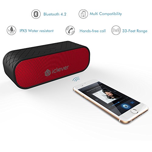 -. Title : iClever BoostSound Bluetooth Speakers Portable Waterproof 20W (BTS05), IPX5 Water Resistant, 20W Wireless Speaker from Dual Passive Driver for Indoor Outdoor Use-Black, Red