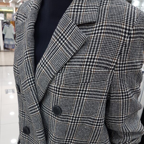 세련체크에 기본핏재킷이네요역시즌 소량에 득템가격으로 강추드려요유행없는 기본에 더블버튼은 멋스럽구요올드하지않은 패턴에 굿~합니당^^기본에 깔끔~날씬한 요아이~일찍 득템하셔용~