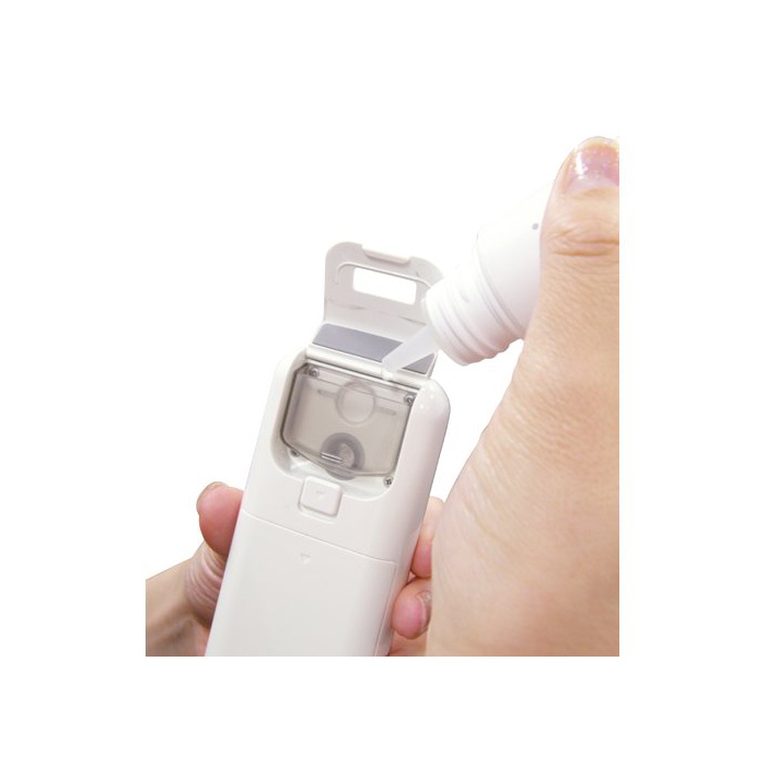 사용 방법:본체의 뒤편의 탱크에 화장 물을 넣고,겉쪽의 커버부를 아래에 슬라이드 시키면 전원이 들어감분 무개시합니다.또한위에 슬라이드 하게 해 되돌리면 전원이 끊어집니다.전원을 끄지 않아도 30 초다음에 자동 정지하는 안심 설계입니다.