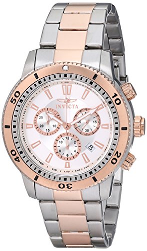 -. Binding : Watch -. Brand : Invicta -. Color : Silver/rose gold/Silver -. Department : mens -. EAN : 0843836012041 -. Feature : Precise Swiss-quartz movement / Flame-fusion crystal; brushed and polished stainless steel case and bracelet with 18k rose gold-plated center links / Chronograph functions with 60 second, 30 minute and 12 hour rose gold-tone border subdials; date function / Silver dial with rose gold-tone hands and hour markers; luminous; 18k rose gold-plated stainless steel unidirectional bezel, crown and pushers; tachymeter on inner bezel / Water resistant to 330 feet (100 M): suitable for snorkeling, as well as swimming, but not diving -. IsAdultProduct : 0 -. Label : Invicta -. Manufacturer : Invicta -. Model : 1204 -. MPN : 1204 -. PackageQuantity : 1 -. PartNumber : 1204 -. ProductGroup : Watch -. ProductTypeName : WATCH -. Publisher : Invicta -. Size : Standard -. Studio : Invicta -. Title : Invicta Men's 1204 II Collection Chronograph Stainless Steel Watch -. UPC : 843836012041