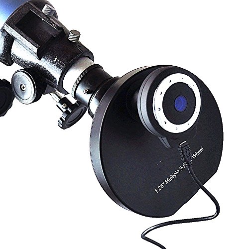 Gosky 9-position 1.25inch Filter Wheel / Revolver for Astronomical Telescope-Standard FittingThis is a nice item and works great for the price. The 1.25inch 9-position quality filter wheel requires a light touch to revolve the wheel into its next position with minimal disruption to your scope settings. Each position has a click stop. Inside of the filter wheel has a 42mm T thread. In eyepiece use you fit the nosepiece on the telescope side and the eyepiece holder on the other. For camera use, the eyepiece holder is replaced with the 42mm Male to Male adapter included in the set giving you the option to connect your T ring or any other piece of equipment that terminates with a 42mm Female thread. A 42mm locking ring is also included as is a 42mm metal dustcap. It is 22m in depth.