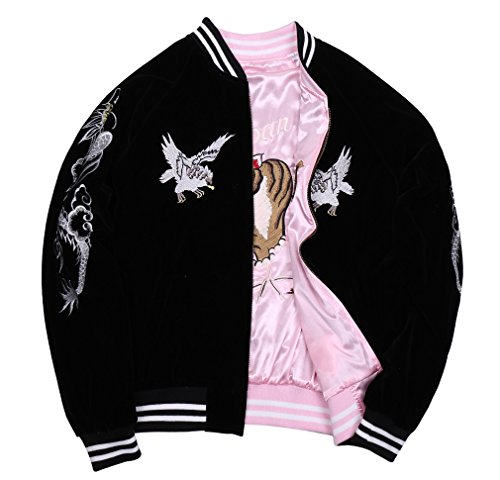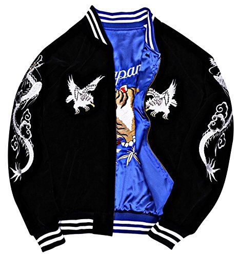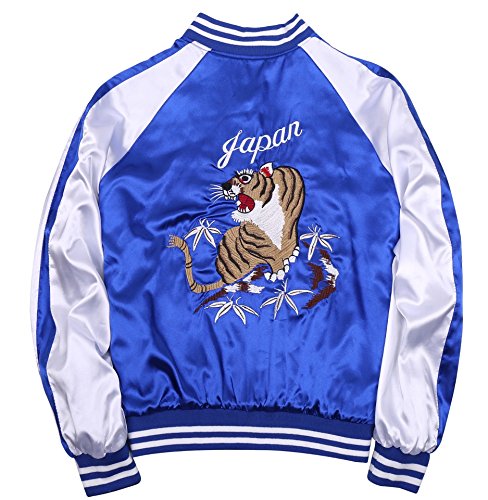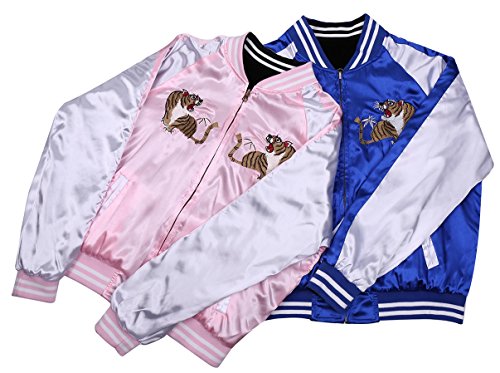 -. Title : Jderby(Jダービー) スカジャン 別珍風 リバーシブル 虎 龍 刺繍 ヴィンテージ 和柄 青 桃 大きいサイズ