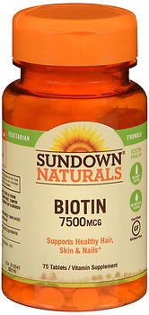 -. Title : Sundown Naturals Biotin 7500 mcg Vitamin Supplement Tablets