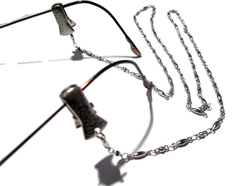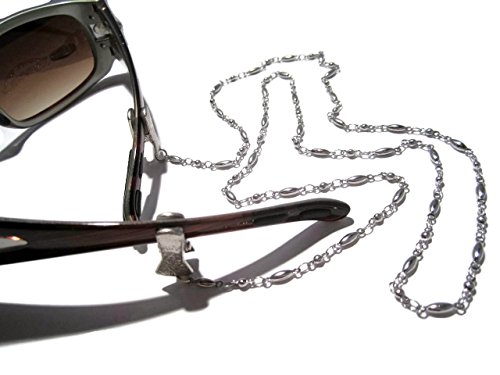ATLanyards Oval and Ball Stainless Steel Chain Eyeglass Holder with Clip Grips, Alligator Clips