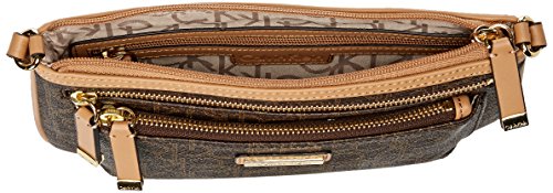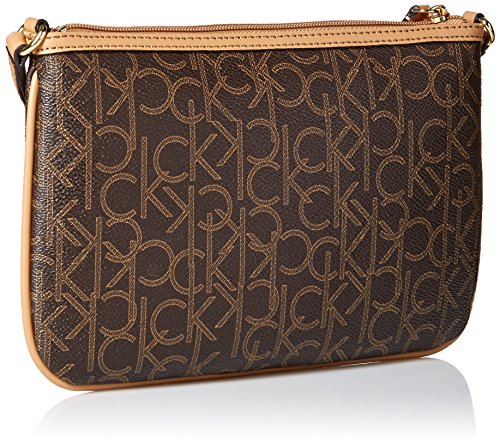 Put a signature spin on your daily here-to-there with this smart crossbody bag from Calvin Klein. Stamped with the label's iconic logo, the adjustable strap and easy access pocket are ideal on-the-go. Calvin Klein bag Faux leather; trim: leather Adjustable crossbody strap with 18" drop Top zip closure Gold-tone hardware; 2 front zip pockets; logo plaque at front Interior features zip pocket and 2 slip pockets 8" W x 6" H x 1" D Silhouette is based off 5'9" model.Feature