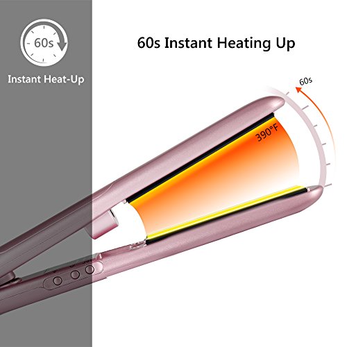 - 【Fast Heating and Safe】 The flat iron quickly heats up in 60 seconds and will Shut-off automatically in 1 hour when not in use in case you forget to turn it off. The ceramic floating heating plate glide smoothly through your hair, no snag any more. The 2 in 1 steam iron can also be used to curl your hair