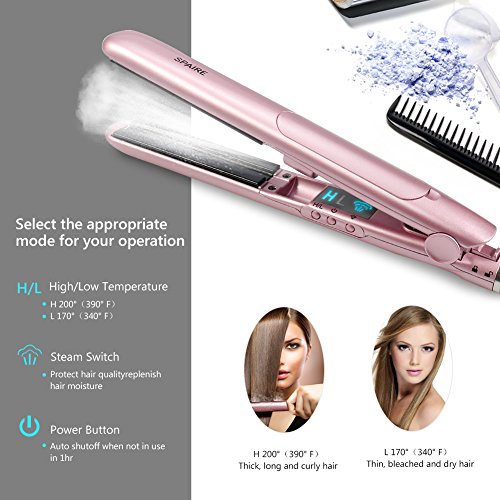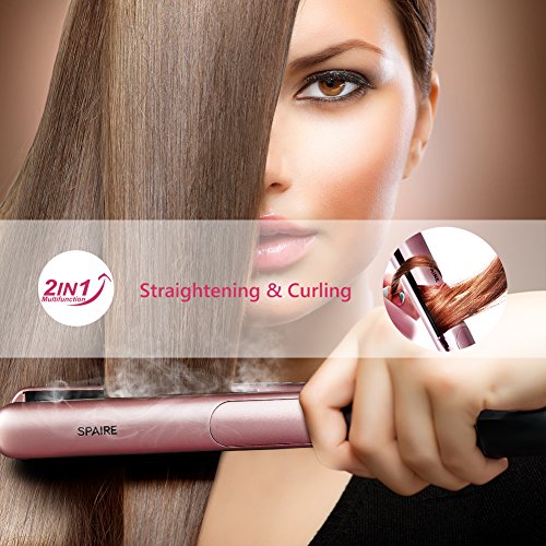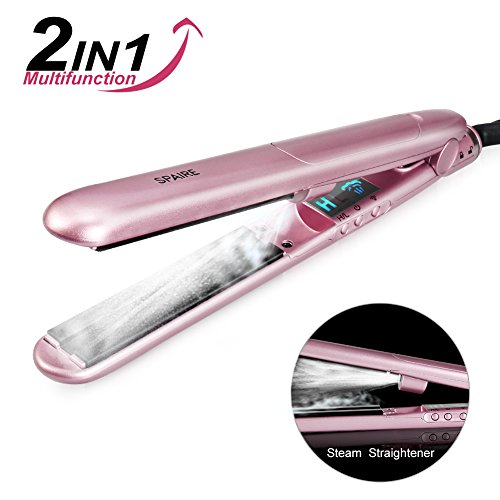 Spaire Steam Flat Iron Hair Straightener Ceramic Plate 1 inch Auto Shutoff Fast Heating Temperature Control Dual Voltage 2 in 1 Straightening and Curling