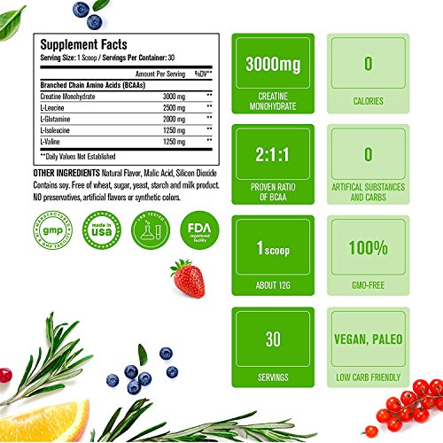 With the right ratio of Leucine, Isoleucine and Valine, and the addition of Glutamine and Creatine, you're getting the right sports nutrition to promote muscle synthesis, lift heavier, prevent muscle fatigue and DOMS, and accelerate recovery at a great price.