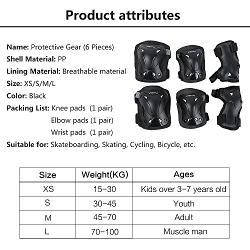 -. Binding : Misc. -. Brand : CASA MALL -. Feature : Size: XS /S /M /L / Made of PP shell, thickened soft sponge, comfortable and durable. / Multiple adjustable elastic straps and Velcro closures for secure fit for various knee girths. / External hard plastic pad offers maximum protection,soft inner provides comfortable wearing when skating, blading, cycling and scooting. / Suitable for skateboard, roller blading, riding a scooter, bicycle and many other outdoor sports. -. Label : CASA MALL -. Manufacturer : CASA MALL -. MPN : CMPG-US02 -. PackageQuantity : 1 -. PartNumber : CMPG-US02 -. ProductGroup : Sports -. ProductTypeName : SPORTING_GOODS -. Publisher : CASA MALL -. Studio : CASA MALL -. Title : Casa Mall Multi-SportElbow Knee Wrist Protective Safety Gear for Kids Cycling /Skateboard / Bike / BMX / Dry Slope Protective Gear-6PCS