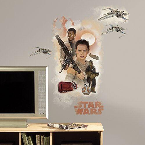 -. Binding : Tools & Home Improvement -. Brand : RoomMates -. Color : Multi -. EAN : 0034878774275 -. Feature : Comes with 4 wall decals; decal range size 8" wide x 4.8" high to 16.75" wide x 28.5" high / Easy to apply - just peel and stick / Applies to any smooth surface / Decals are removable and repositionable with no sticky residue / Wall decals made in the USA -. IsAutographed : 0 -. Label : York Wallcoverings - Wall Decals -. Manufacturer : York Wallcoverings - Wall Decals -. Model : RMK3013GM -. MPN : RMK3013GM -. NumberOfItems : 1 -. PackageQuantity : 1 -. PartNumber : RMK3013GM -. ProductGroup : Home Improvement -. ProductTypeName : BUILDING_MATERIAL -. Publisher : York Wallcoverings - Wall Decals -. Size : 4 Count -. Studio : York Wallcoverings - Wall Decals -. Title : RoomMates RMK3013GM Star Wars EP VII Hero Burst P&S Giant Wall Decal, 4 Count -. UPC : 034878774275