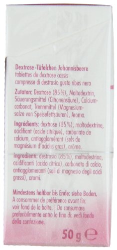 -. Feature : Dextrose Täfelchen / Fördert Leistungs- und Konzentrationsfähigkeit / Erfrischender Johannisbeer Geschmaclk / Für zwischendurch und unterwegs