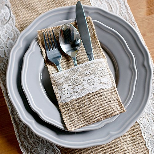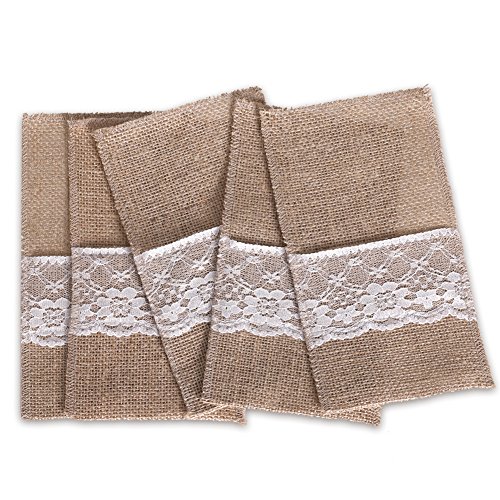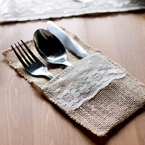 Ling's moment 10 Pack 4 x 8 Inch Natural Burlap Silverware Napkin Holders Cutlery Holders Pouch for Vintage Wedding Decorations Party Bridal Shower Table Setting Decorations