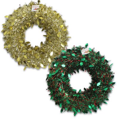 Plastic Foil Christmas Wreath - Asst, 17"D (Gold,)