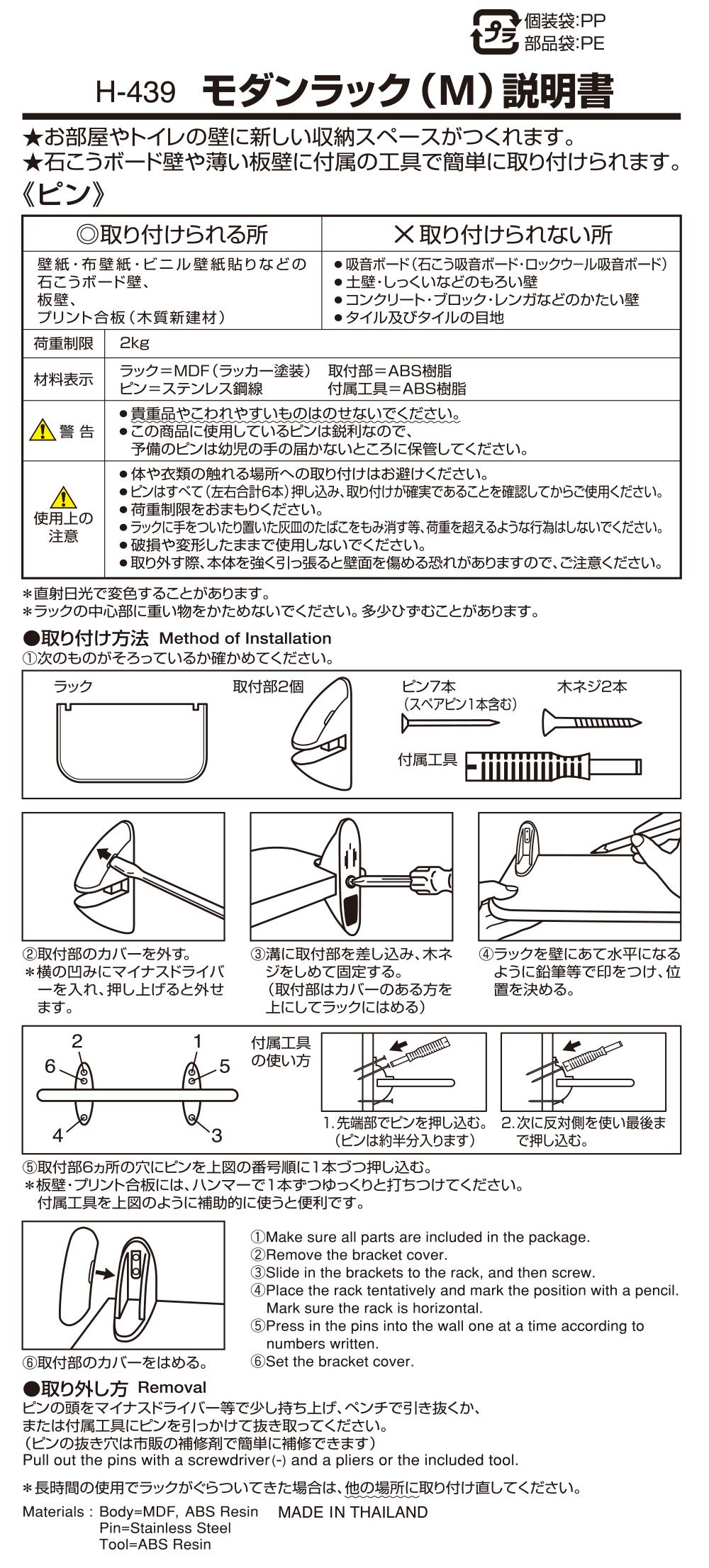 It is attached with the pin attached to the wall of the gypsum board or the thin plate wall.