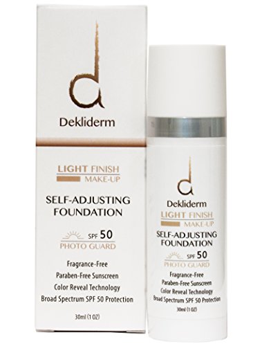 Self-Adjusting Foundation - Our unique color-matching formula protects and moisturizes the skin as it works to even out your complexion. Dekliderm Self-Adjusting Foundation contains SPF 50 sun protection to shield your skin from harmful UVA and UVB rays. It is designed for daily use and will give your skin that illuminating silky finish other foundations just don't provide. Our fragrance-free formula is lightweight and quickly absorbs onto the skin without any dryness or caking. Moisturizes the skin while it works to even out your complexion.