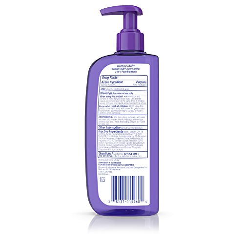 Use Clean & Clear Advantage Acne Control 3-in-1 Foaming Wash to treat acne as you wash. This foaming cleanser goes beyond cleansing to treat acne as you wash while working to help prevent future breakouts. This 3-in-1 formula has maximum-strength acne-fighting salicylic acid to thoroughly cleanse skin and helps prevent future pimples. Oil-free, this facial cleanser is non-comedogenic, treats pimples, and is good for everyday use.Feature