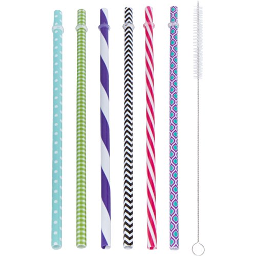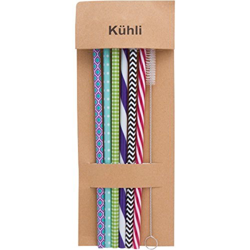 Reusable Straws from Kuhli - 6 Pack Mixed Designs, Hard Plastic - No BPA, Fun Colors & Designs…
