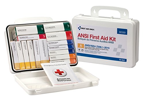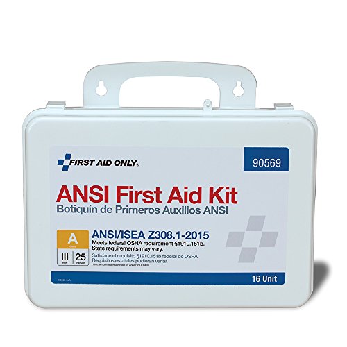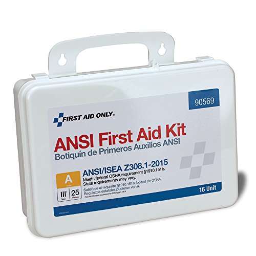 -. Binding : Misc. -. Brand : First Aid Only -. EAN : 0092265905695 -. Feature : Weatherproof case comes with a carrying handle / Unitized contents meet the 2015 ANSI Class A requirements / Sufficient to treat 25 or more people -. Label : Acme United -. Manufacturer : Acme United -. Model : 90569 -. MPN : 90569 -. NumberOfItems : 1 -. PackageQuantity : 1 -. PartNumber : 90569 -. ProductGroup : BISS Basic -. ProductTypeName : SAFETY_SUPPLY -. Publisher : Acme United -. Size : 25 Person -. Studio : Acme United -. Title : First Aid Only 90569 ANSI 2015 Compliant 16 Unit Class A First Aid Kit, Plastic, Weatherproof -. UPC : 092265905695