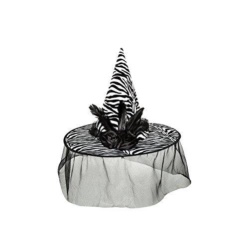 Zebra Witch Hat with Feathers,Flowers and Veil