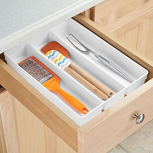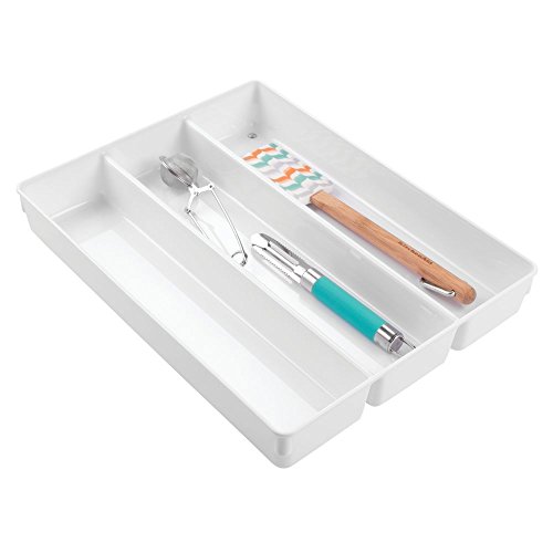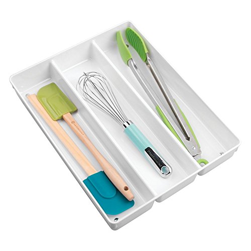 InterDesign Linus Kitchen Drawer Utensil Organizer for Flatware, Spatulas, Gadgets - 13.75" x 10.5" x 2", White
