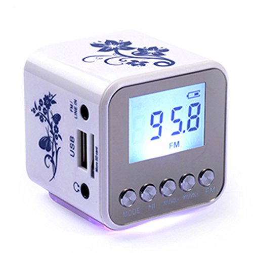 Haoponer Portable Mini Digital Display Screen Speaker USB Flash Drive Micro SD/TF Card Music MP3 Player FM Radio Blue and white porcelain plastic White/Blue-1
