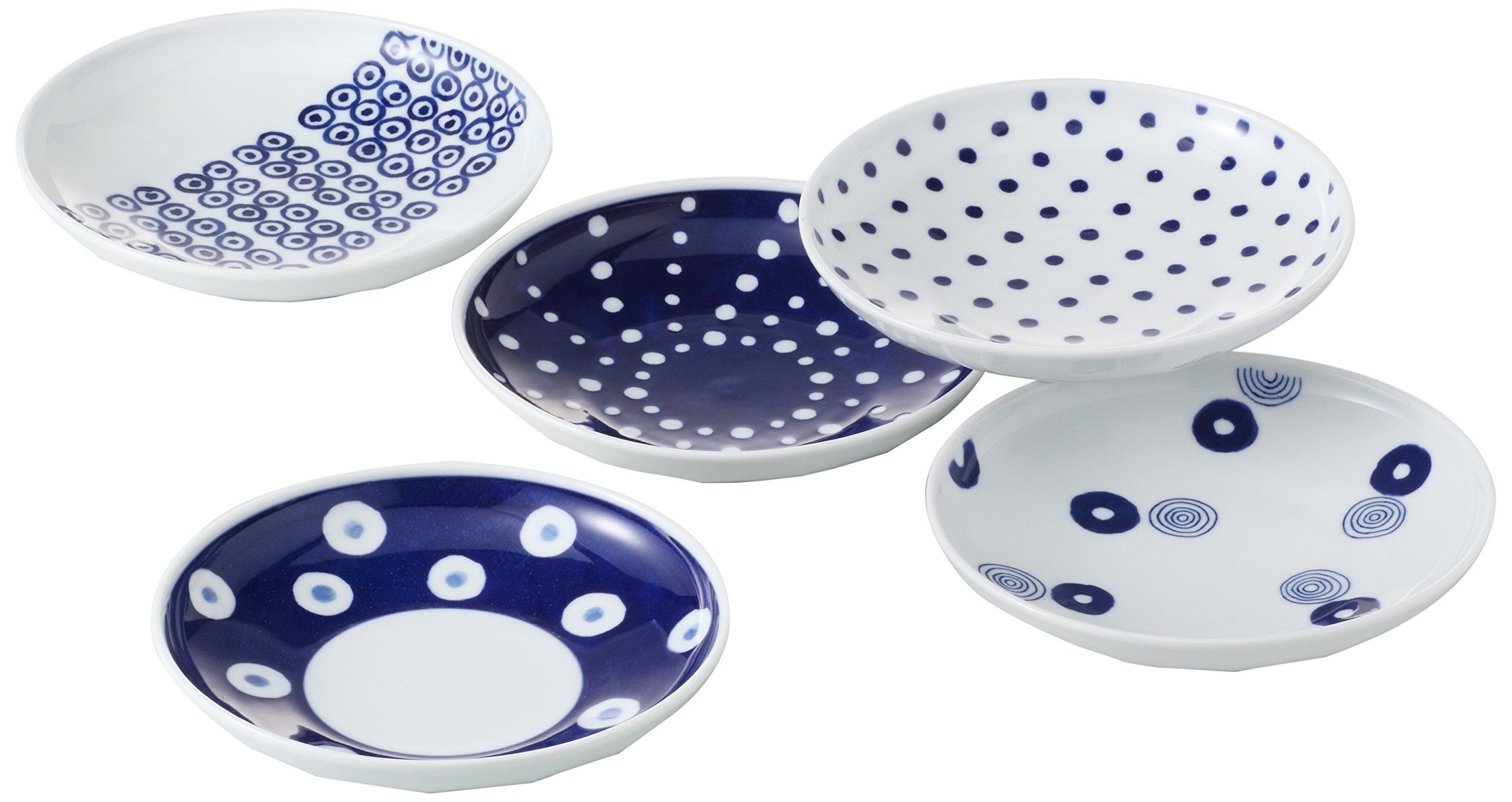 West Coast pottery Indigo round Crest lightweight plate set 5 PC