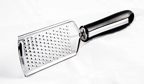 COMFORTABLE HANDLE - This Paddle Hand held Grater has a very Comfortable and Sturdy Grip! Making it easy to grate hard cheeses, chocolate, Vegetables and Other Food!