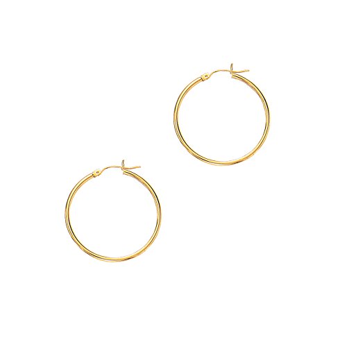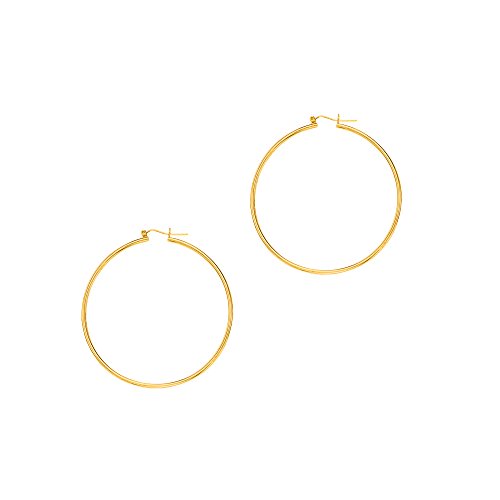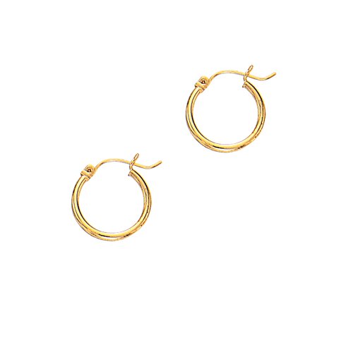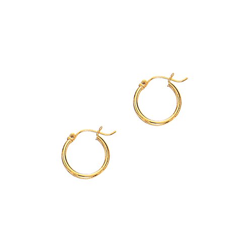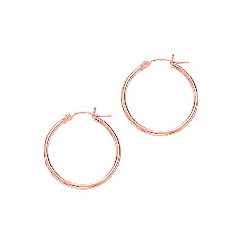 Aleksa Ladies 14K Rose,White or Yellow Gold Polished Classic Hinched 2mm Wide Tube Hoop Earrings 15-60mm