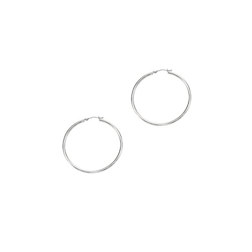 Ladies 14K White Gold Polished Classic Hinched Tube Hoop Earrings (Diameter 40mm,Width 2mm)