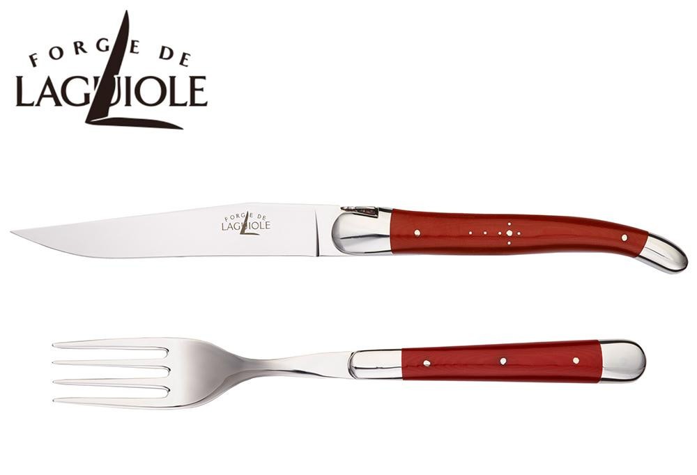 | テーブルナイフの刃はすべて鍛造されており、切れ味良くステーキ肉などを切ることができます。また、中ほどにふくらみをもたせたフォルムのハンドルは大変握り易く、適度な重量感が手の平にフィット。柄の部分は着色された布をメラミン樹脂につけ込んで圧縮した「コンプレストファブリック」を使用。耐久性にすぐれ、摩耗や変色をおこしにくくなっています。従来のライヨールにはない斬新でカラフルなデザインをお楽しみ下さい♪ |