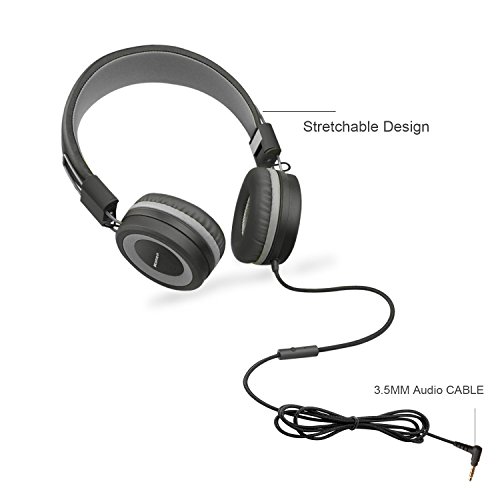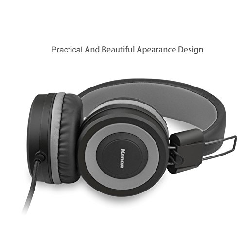 Headphones,Riwbox KN5 Stereo Lightweight Foldable Headphones Adjustable Headband On Ear Headsets with Microphone and Volume Control 3.5mm for Cellphones Smartphones Iphone Laptop Computer Mp3/4 (grey)