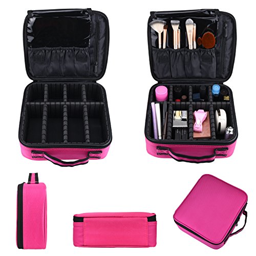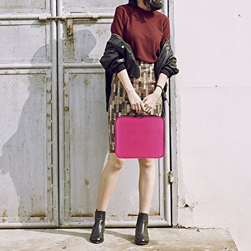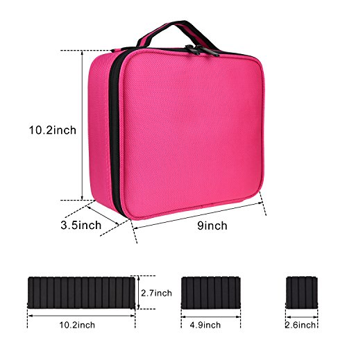 10" Professional Portable Travel Makeup Case Cosmetic Bags Organizer Storage Bag Train Case (Rose Red)