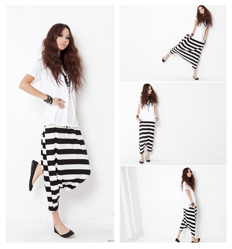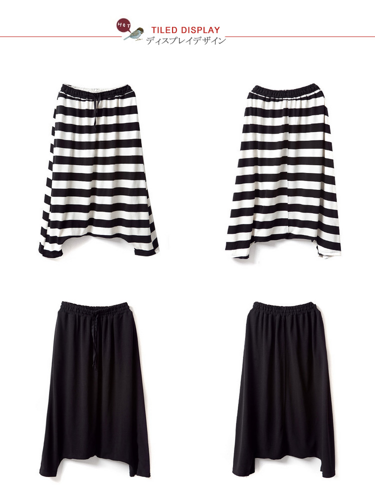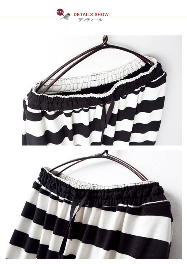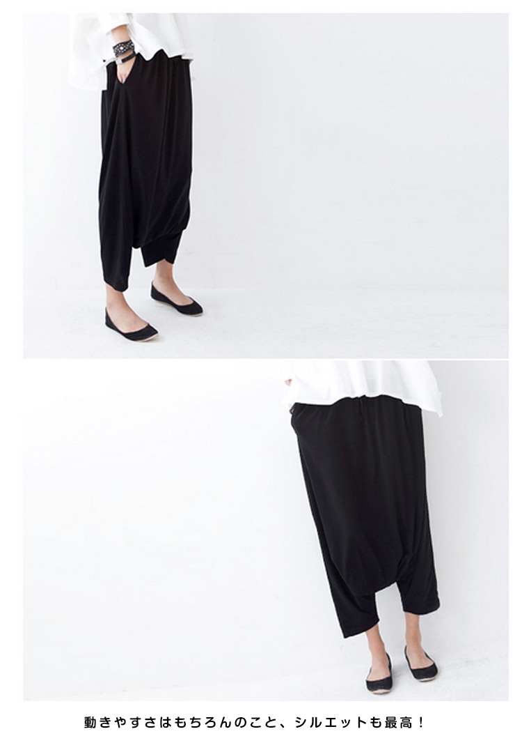 | 無地とボーダーの2タイプ展開!大きなドレープが印象的なサルエル。程度良いの薄手素材は、汗をかいてもすぐ乾き、着心地よく長時間の使用も快適です。ウエストはゴムなので、お腹にやさしいソフトなフィット感です。動きやすさはもちろんのこと、シルエットも最高! ゆったりでダンス練習・舞台用としてお洒落に活用できます! | |