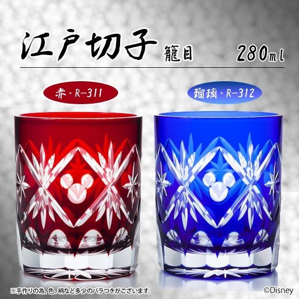 | 江戸切子とは、江戸時代の後期より現代まで受け継がれてきた伝統工芸の一つで透明な硝子に色硝子を薄く被せたものに砥石等を用いてカットを施した硝子器の事です。本商品は竹籠の八角形の編み目に由来し、縁起の良い「八角籠目紋様」と、しなやかな強さを持つ「笹葉」をモチーフにした文様の中に切子師の培われた指先の技術で、ミッキーマウスのシルエットが彫り込まれた新しい感覚の硝子工芸品となっております。 |