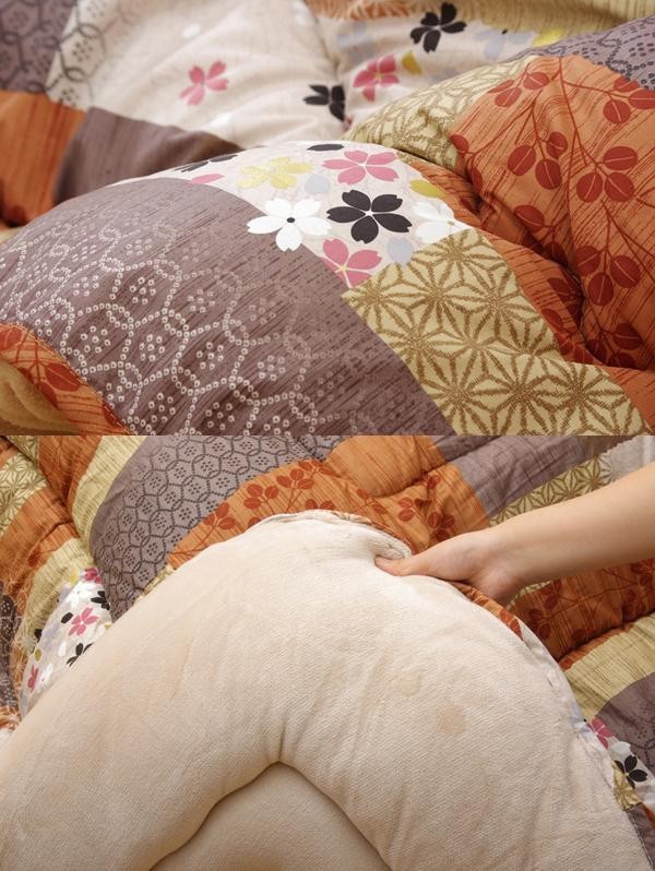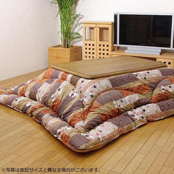 和柄のこたつ布団です。熱が逃げにくいフィットキルト加工を施しています。