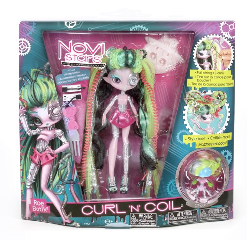 Novi Stars doll has tubular hair that curls into an updo by pulling a special piece of hair