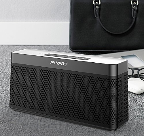 Monpos (Sport 5) Bluetooth Speaker with Built-in Mic,16W Dual-Driver, Portable Wireless Speaker with Superior Stereo Sound, rich bass. (SP5 Black)