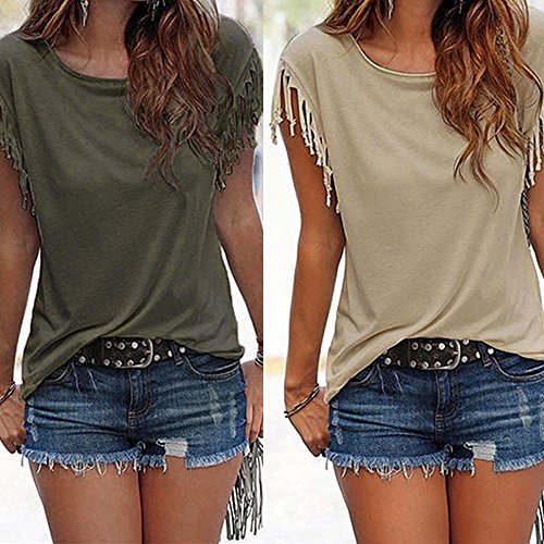 Pengy Clearance Women Sexy Tassel Short Sleeve Top Summer Loose Blouse Shirt