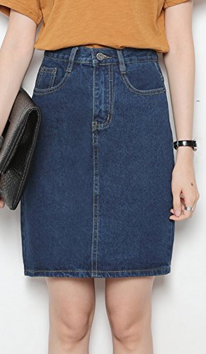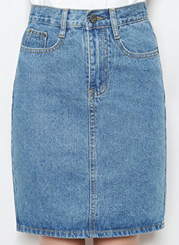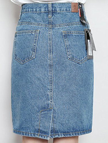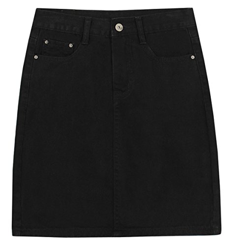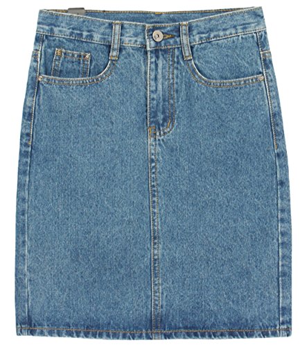 Chouyatou Women's Basic Five-Pocket Stretchy Denim Skirt with Slit
